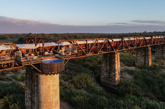 Kruger Shalati, known as "The Train on the Bridge," is a luxurious and unique hotel experience situated on the historic Selati Bridge in South Africa's Kruger National Park. This one-of-a-kind accommodation offers guests the chance to stay aboard a vintage train, overlooking the Sabie River, with uninterrupted views of the African wilderness.