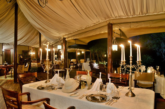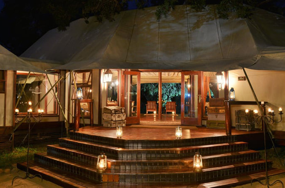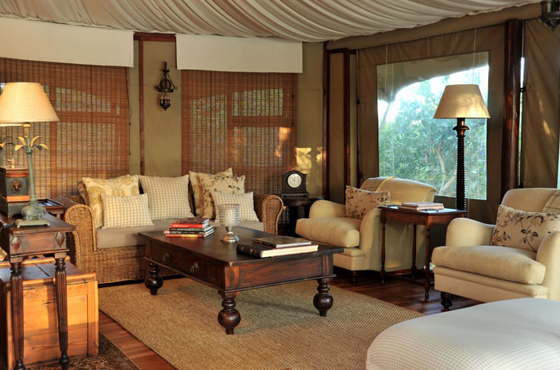 The camp boasts elegant tents featuring teak floorboards, luxurious